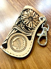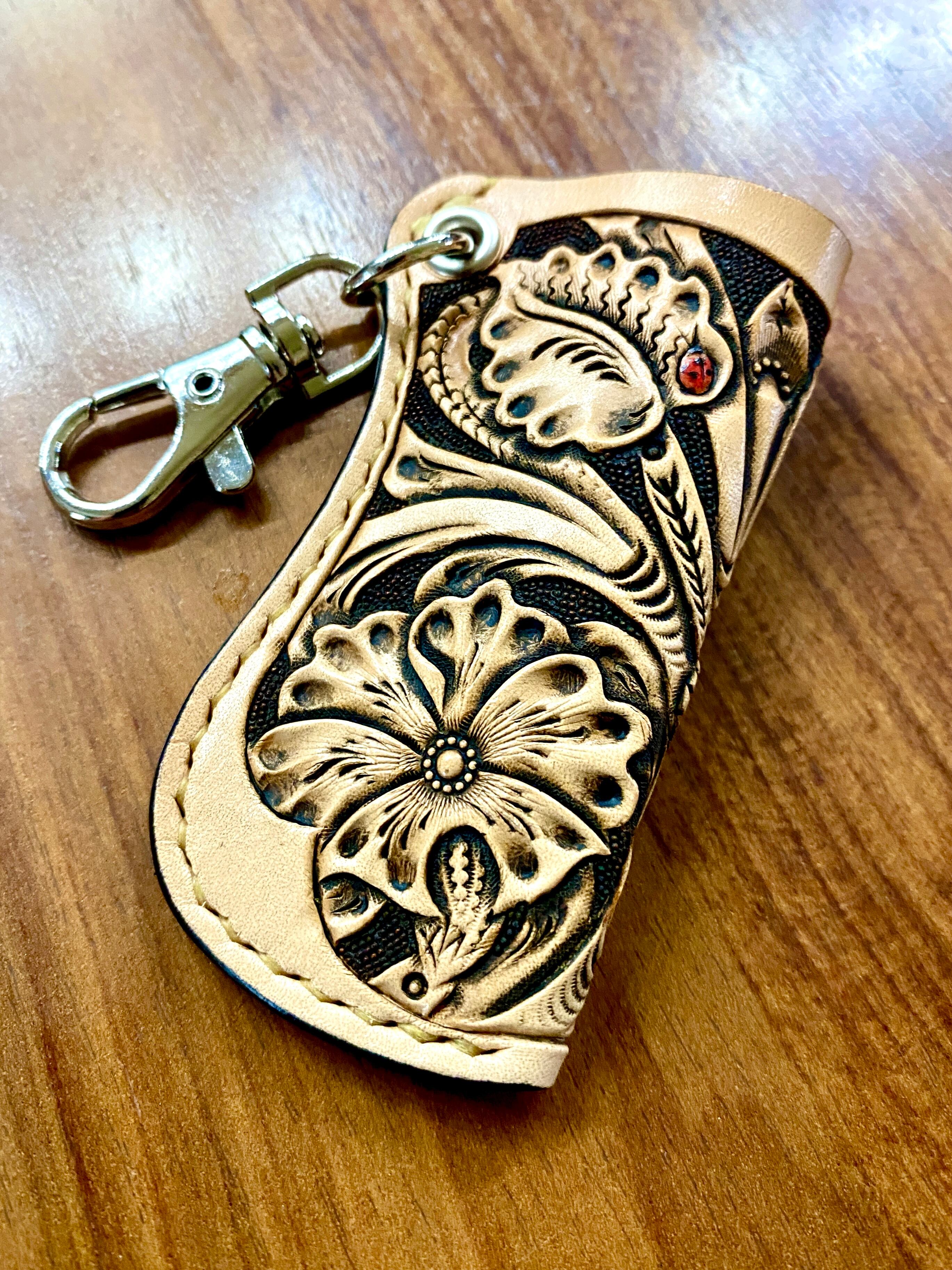 このカービング・ライターケースは、全面に施されたフラワーカービングが特徴で、迫力がありながらも高級感漂うデザインに加え、エイティーン・レザーではお馴染みの「てんとう虫」の存在もアクセントになっております。使い捨てライターをスタイリッシュに持ち運ぶことができるこのケースは、日常使いはもちろん、特別なシーンにもぴったりです。ハンドメイドレザークラフトの温かみを感じながら、使用するたびに愛着が湧いてくるアイテムです。